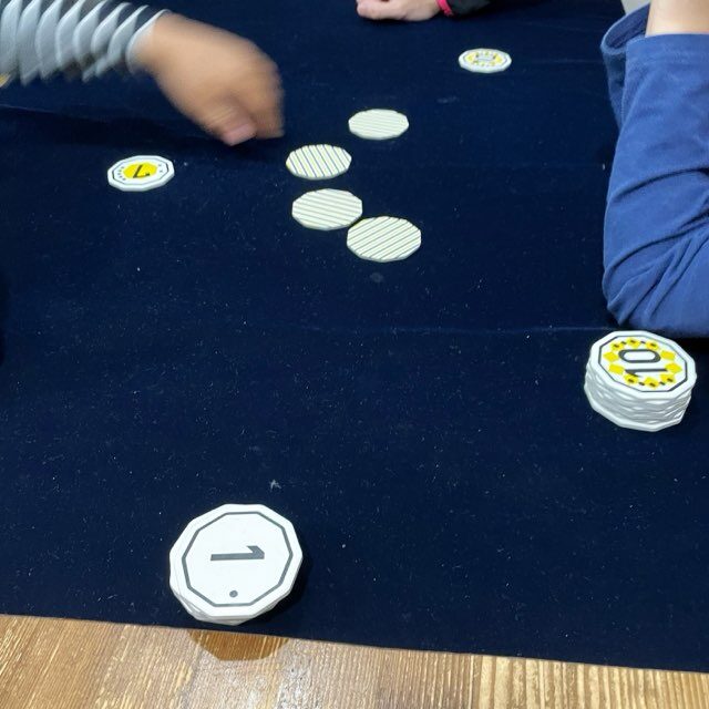 裏向きの数字タイルをめくって合計がちょうど10になるとめくったタイルを全部もらえます。枚数が多い人の勝ち。
