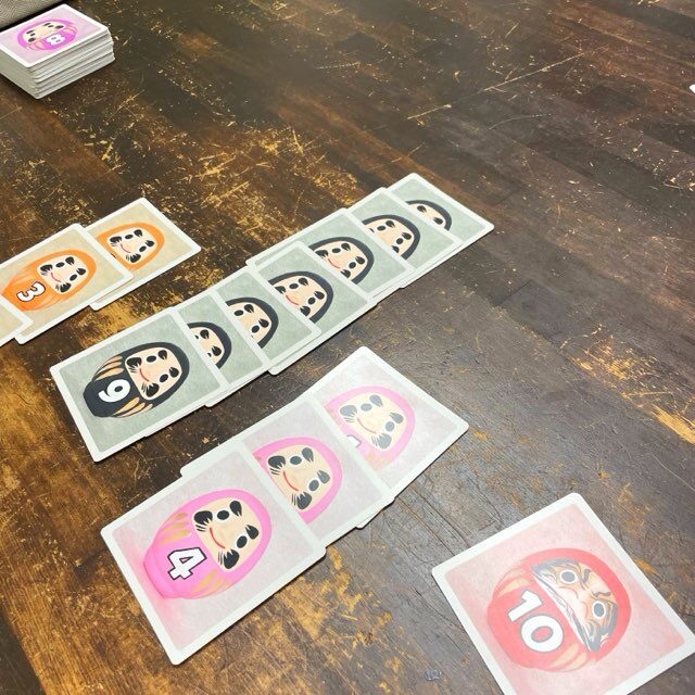 山札からカードを引いてだるまを集めましょう。3枚以上ある時に同じ数字のだるまが出たら即終了!