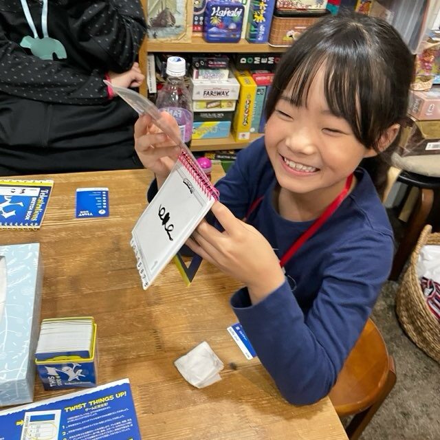 大勢でわいわい遊べる伝言ゲーム。お題⇒絵⇒言葉⇒絵・・・とお隣に回していきます。答え合わせが楽しい!