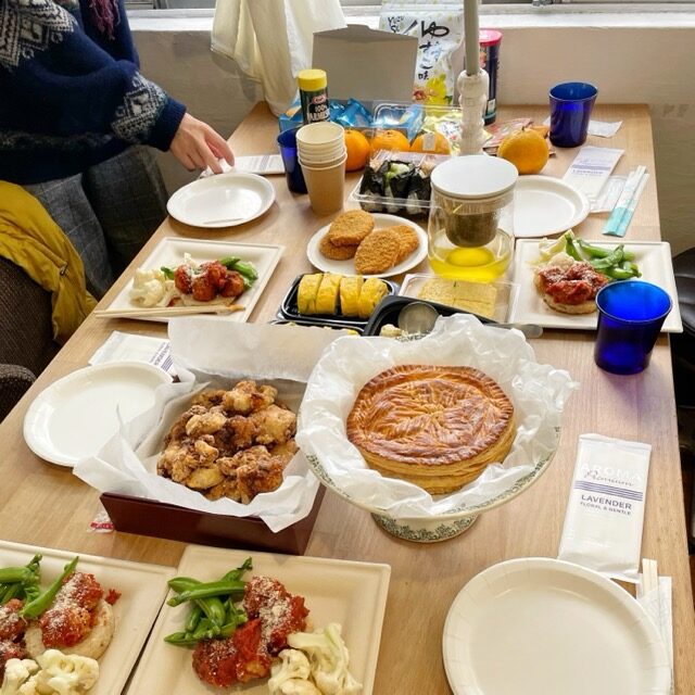 先日の豊島ビルでの持ち寄り新年会。 日頃なかなか集まれないので、美味しいものをいただきながらゆっくりおしゃべりできて楽しかったです。 次回豊島ビルでのイベントTeshimarché(テシマルシェ)は桜が咲くころに開催しよう!ということになりました。詳細決まりましたらお知らせいたします。 お問い合わせ・ご予約はLINEからも受付しています ご予約・お申込み LINE ご不明点などございましたら、気軽におたずねください。 アロマトリートメントのご案内 アロマワークショップのご案内 ボードゲーム会のご案内